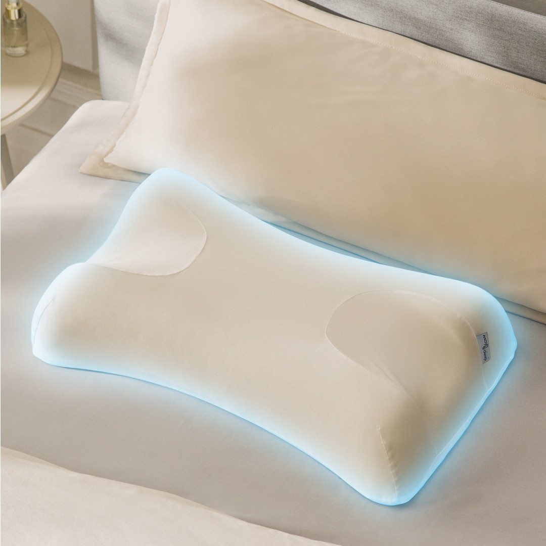 Thanks to its special design, the Sleep&Glow provides comfort while reducing contact between the face and pillow, preventing and fighting sleep wrinkles and morning puffines.