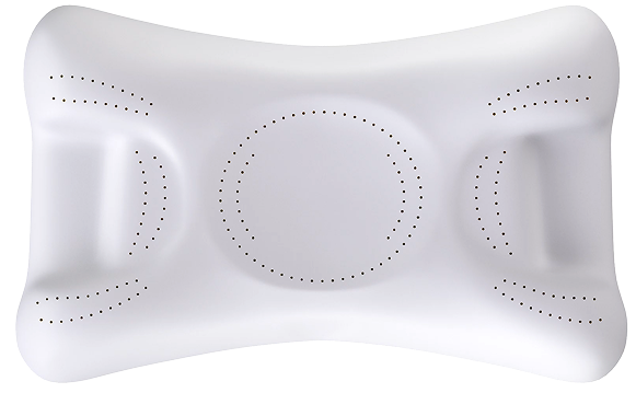 The pillow's ventilation zones prevent heat buildup. The location of the holes is concentrated around the cheeks and eyes — the areas most susceptible to swelling.
